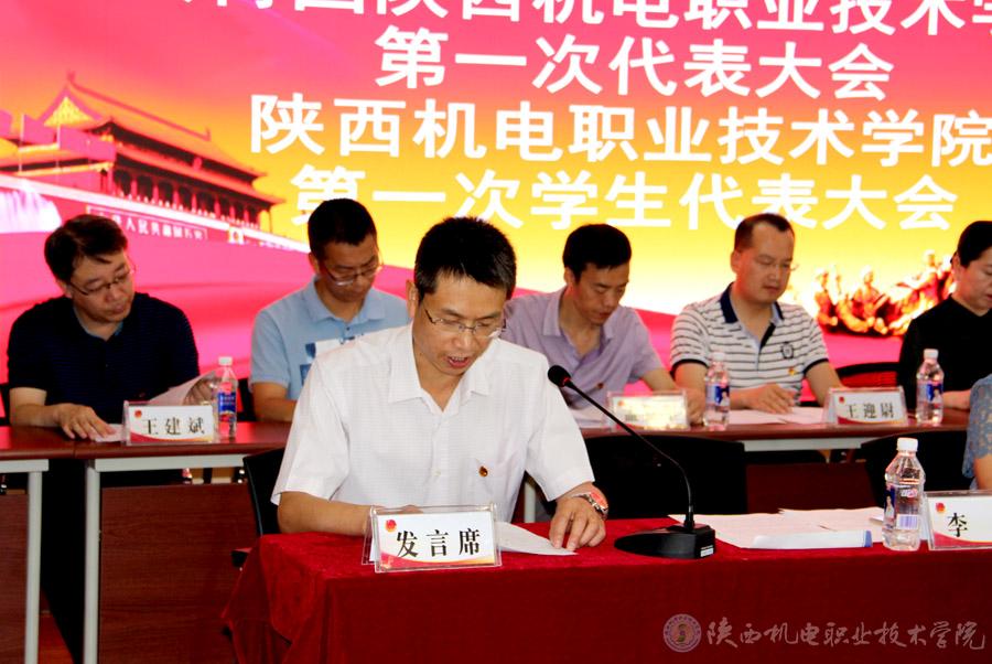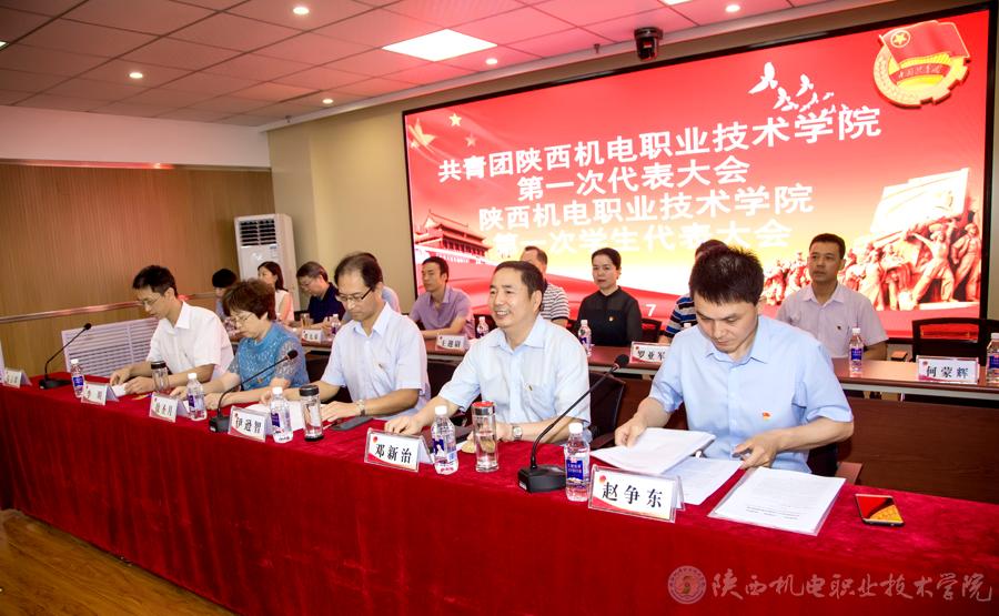 青春筑梦共奋进,砥砺前行谱华章,2018年7月7日,共青团陕西机电职业技术学院第一次代表大会、陕西机电职业技术学院第一次学生代表大会在汽车机电大楼四楼视频会议室隆重召开。我院党委书记、院长伊逊智,党委副书记、纪委书记邓新治,党委委员、副院长徐圣月,党委委员、院长助理赵争东,党委宣传部部长、团委书记李明及我院相关职能部门负责人应邀出席了开幕式。学院辅导员以及全体团代会、学代会200余名代表参加了会议。大会由赵争东主持。
