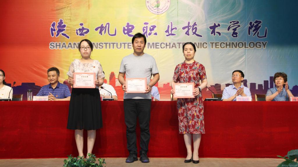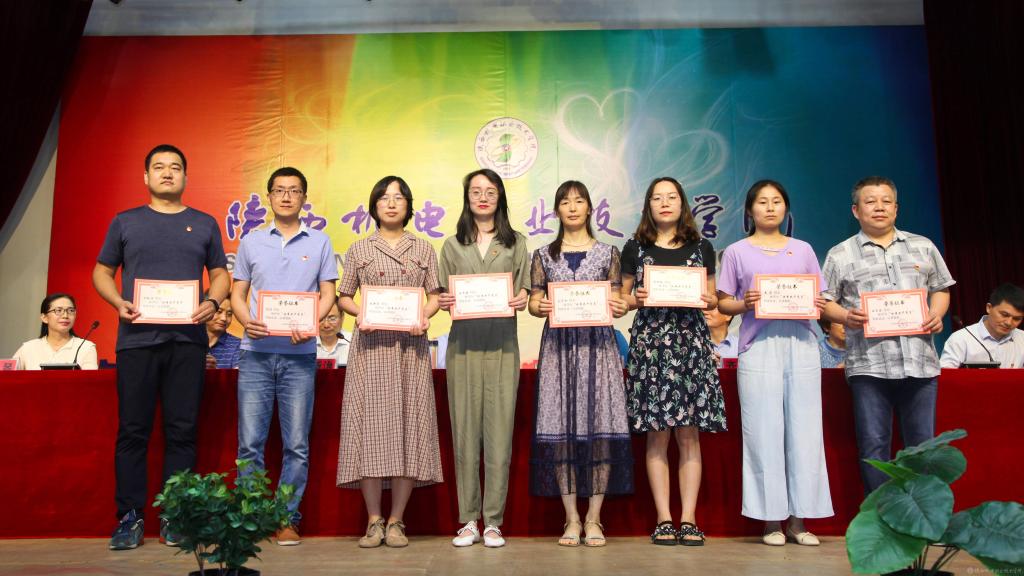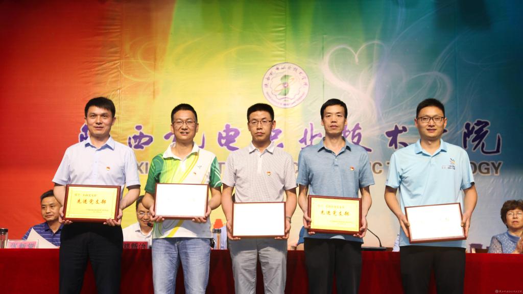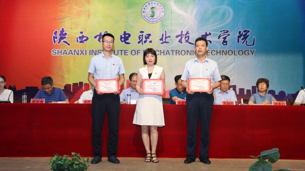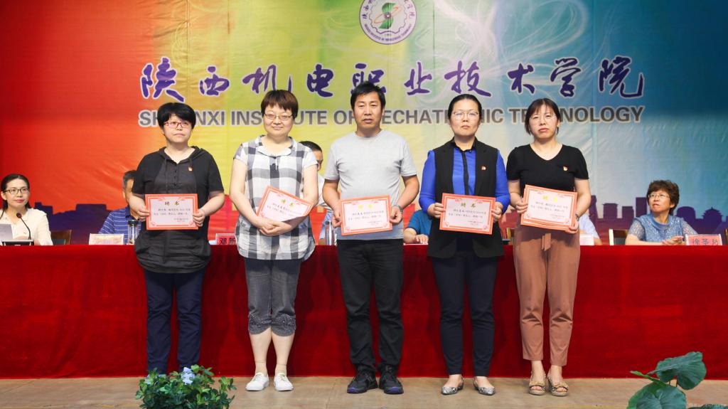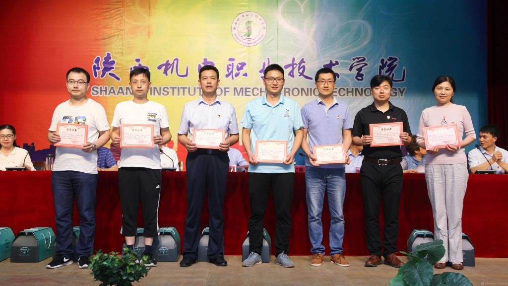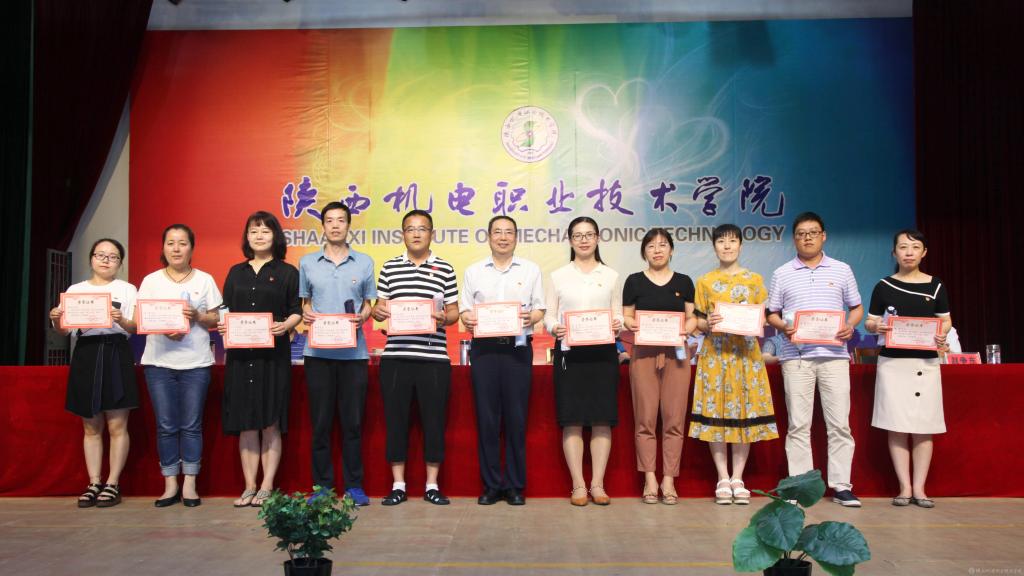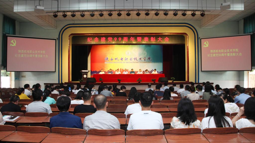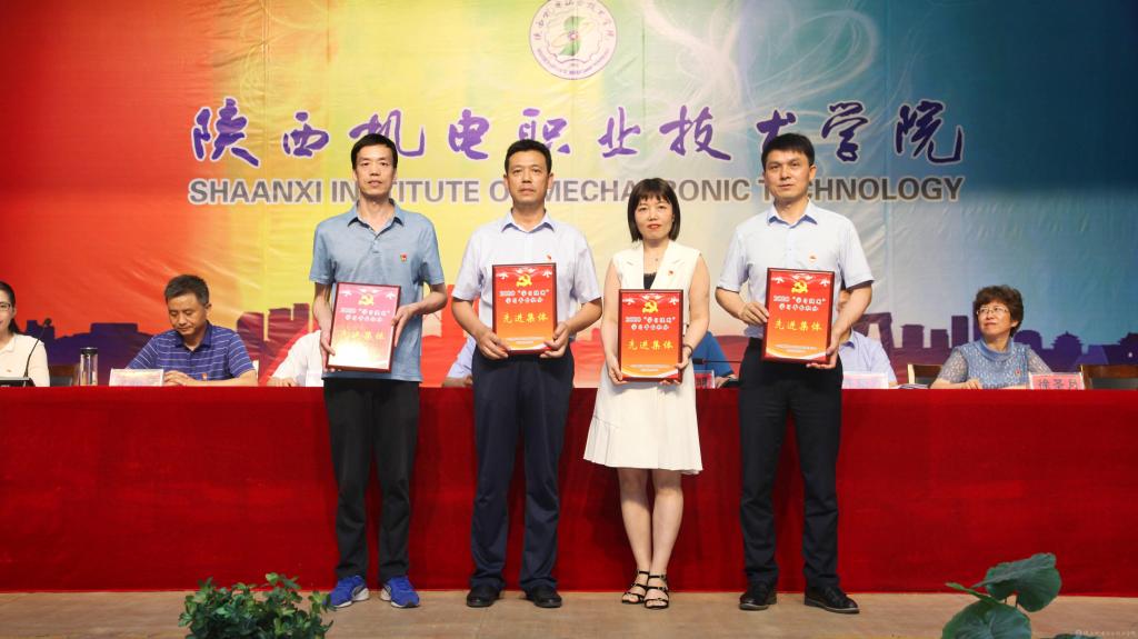邓新治宣读《中共陕西机电职业技术学院委员会关于庆祝建党99周年暨表彰先进党支部、优秀共产党员、优秀党务工作者的决定》并颁奖,授予行政党支部等5个单位“先进党支部”,授予徐圣月等18名同志“优秀共产党员”称号,授予邢平等3名同志“优秀党务工作者”荣誉称号。