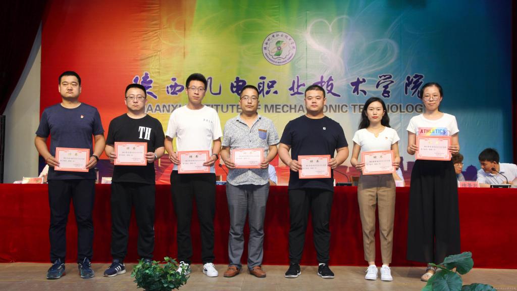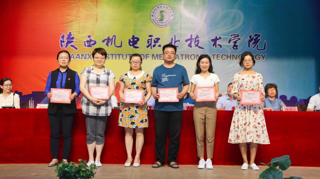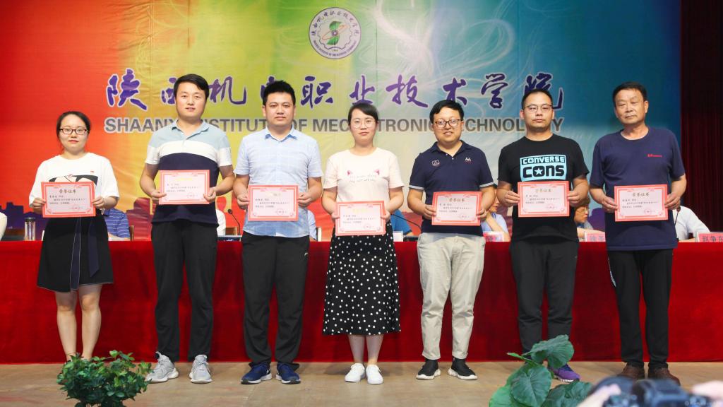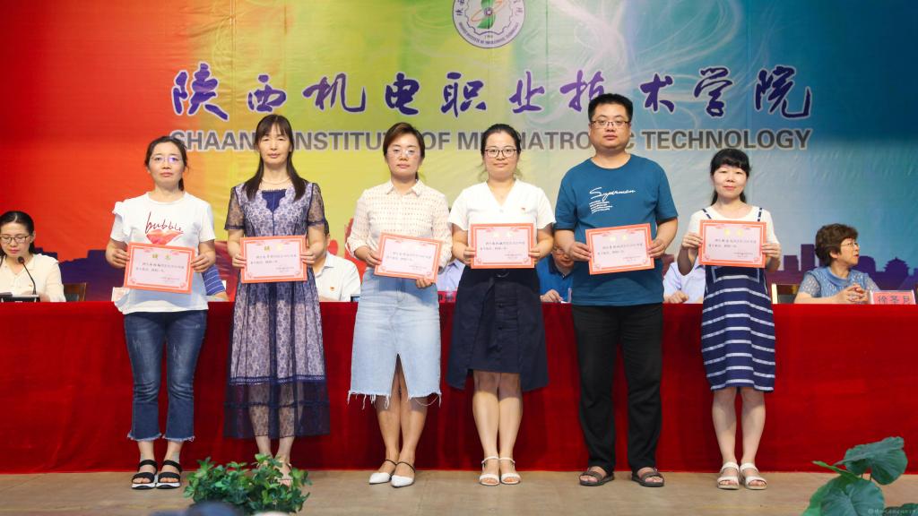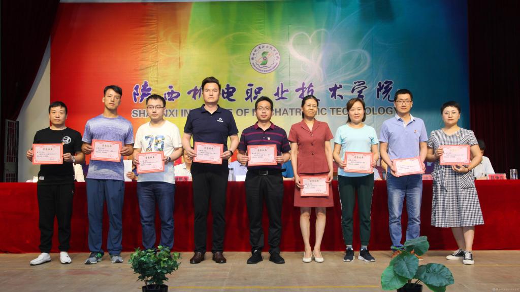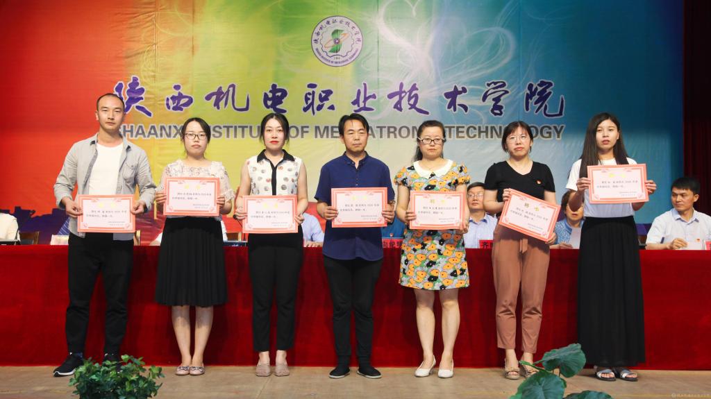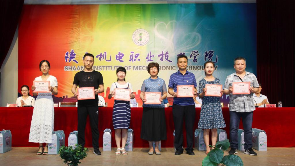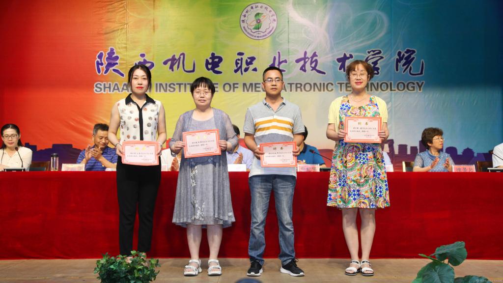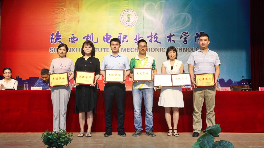 邓新治宣读《中共陕西机电职业技术学院委员会关于庆祝建党99周年暨表彰先进党支部、优秀共产党员、优秀党务工作者的决定》并颁奖,授予行政党支部等5个单位“先进党支部”,授予徐圣月等18名同志“优秀共产党员”称号,授予邢平等3名同志“优秀党务工作者”荣誉称号。