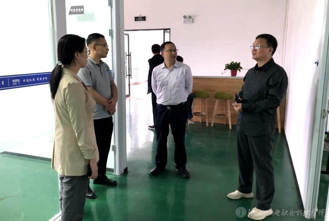 党委副书记、院长向纪明(右二)、党委副书记、纪委书记齐晓军(右一)、副院长张琴(左一)与厚溥IT软件学院教师交流