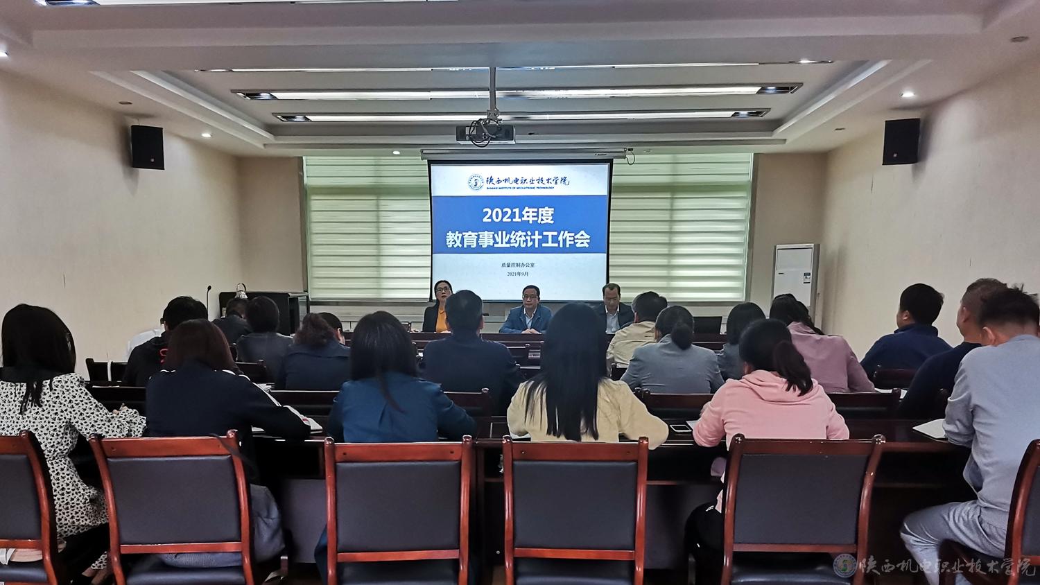 为做好2021年度教育事业统计工作,深入学习《教育统计管理规定》等教育事业统计制度法规,进一步加强统计人员思想意识、规范意识、法治意识,陕西机电职业技术学院于9月26日下午组织召开“2021年度教育事业统计工作会”,党委副书记、院长向纪明,副院长张琴及相关部门负责人、统计员30余人参加会议,会议由质量控制办公室主任王迎尉主持。