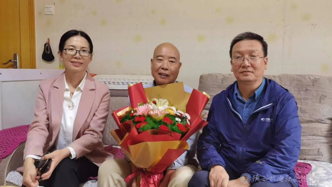 齐晓军(右一)、张琴(左一)慰问退休教职工贾侃绪(左二)