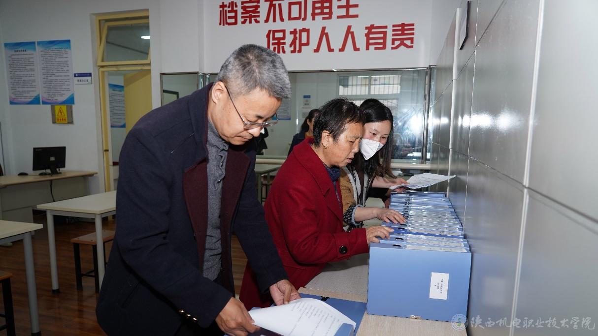 3月20日,陕西省高校档案检查工作领导小组副组长、省教育厅办公室调研员、省高教系统档案学会副理事长王瑛,西北大学档案馆馆长王旭洲,西安财经大学档案馆馆长崔军定,西安欧亚学院档案室主任李俊连、西京学院档案馆馆长马燕等莅临我校进行档案工作专项检查,党委书记伊逊智,党委副书记、院长向纪明,党委委员、院长助理赵争东,党政办主任、档案室主任康健,档案室干事闫瑶瑶参加档案工作汇报会。