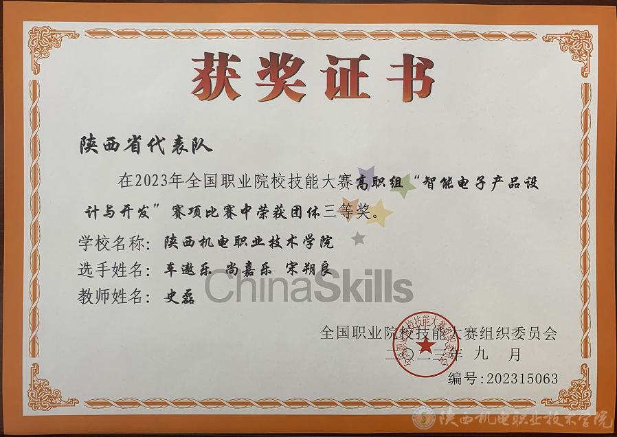 陕西机电职业技术学院师生在2023全国职业院校技能大赛高职组“智能电子产品设计与开发”赛项中喜获佳绩