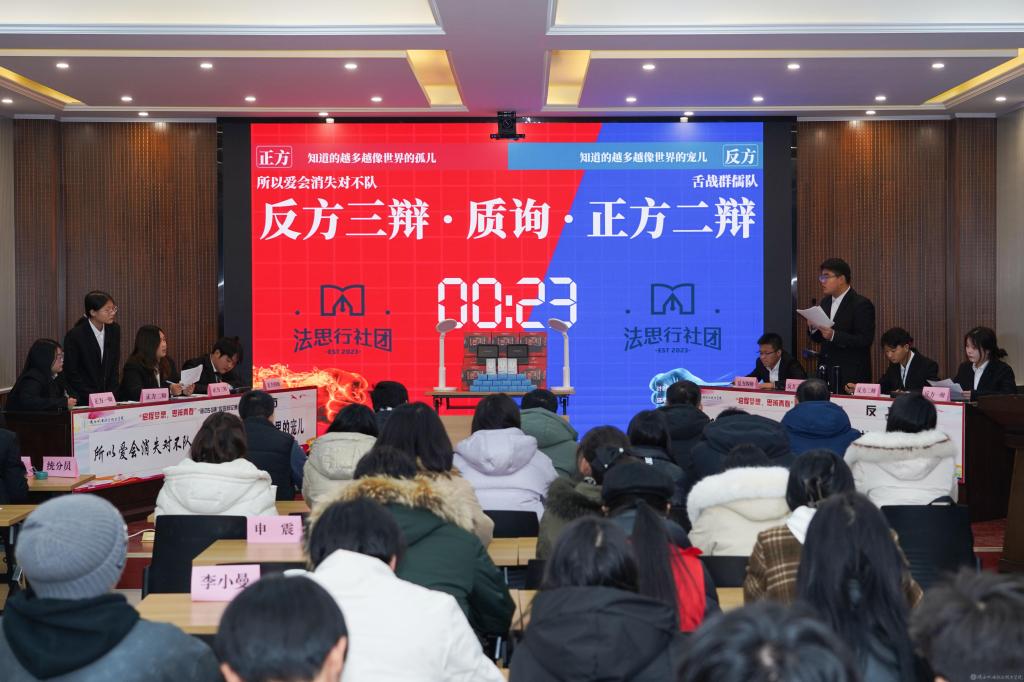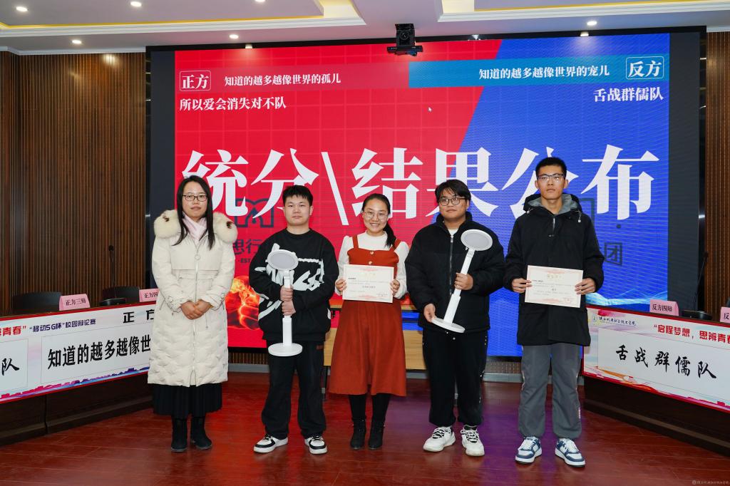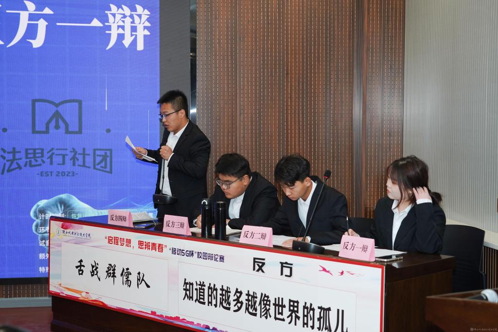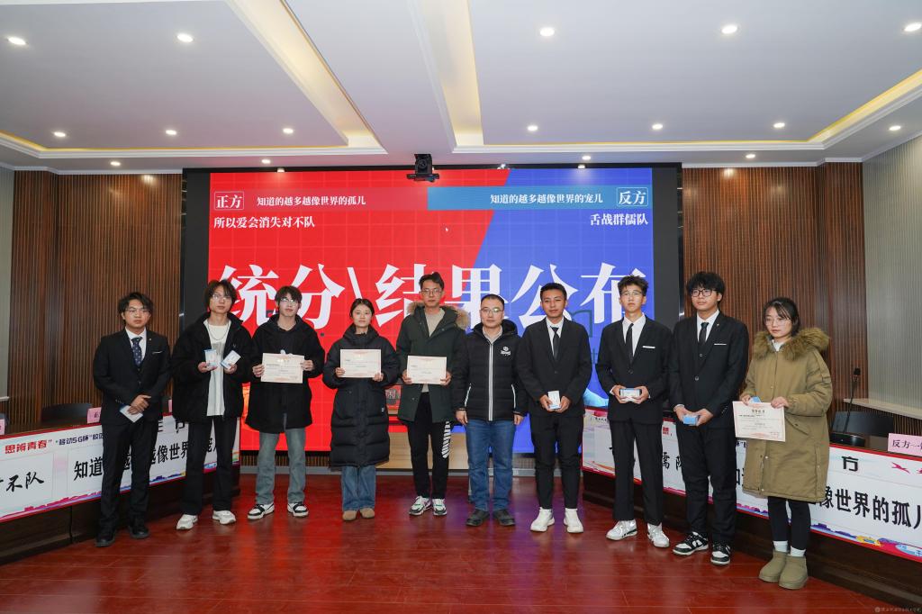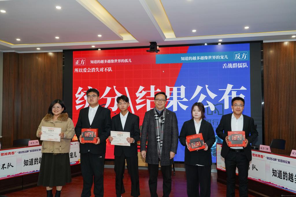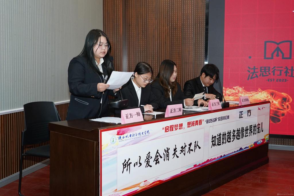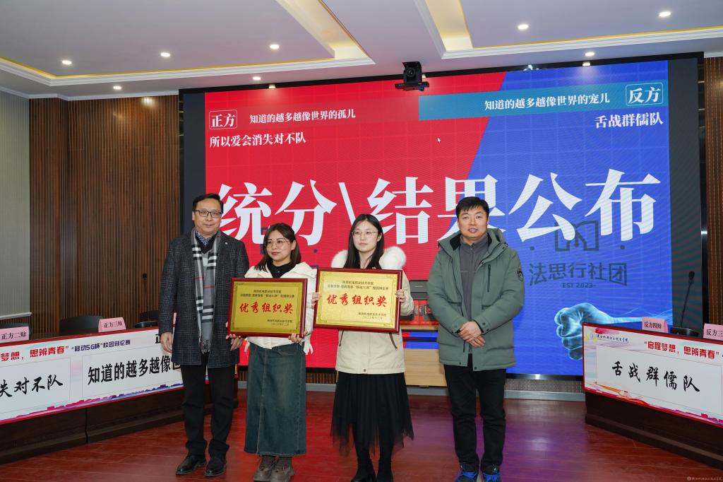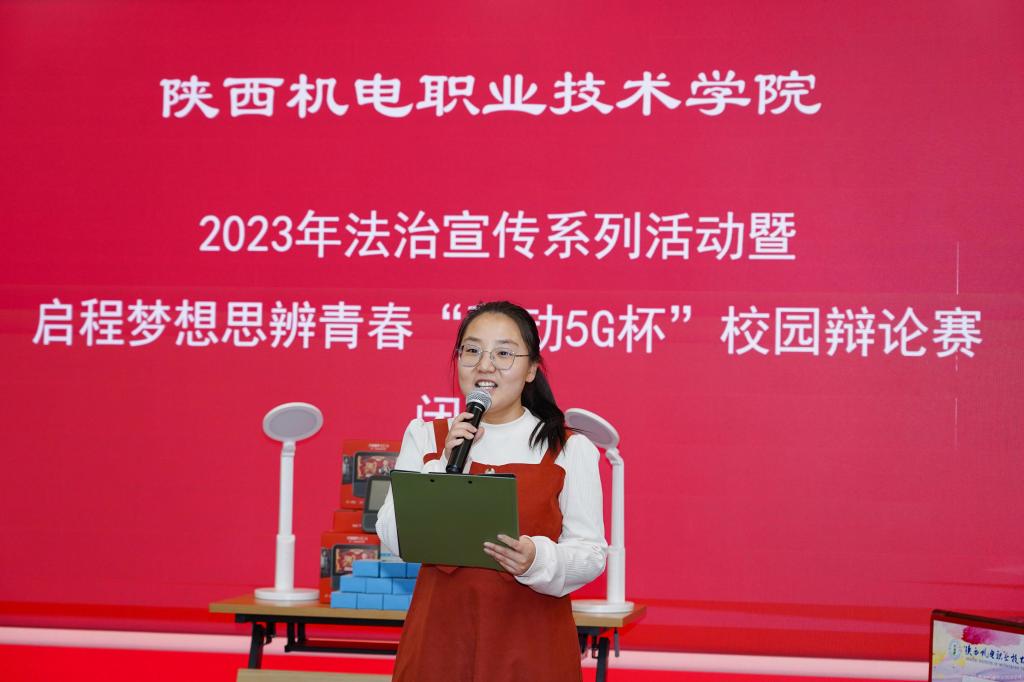 2023年12月28日,陕西机电职业技术学院2023年法治宣传系列活动暨启程梦想·思辨青春“移动5G杯”校园辩论赛进行了冠军争夺赛,并举行了颁奖仪式。校团委书记王枢,基础部副部长李明,马克思主义学院负责人王康,交通运输学院团总支书记、学生管理工作办公室主任侯京贺,电子信息学院团总支书记、学生管理工作办公室主任汪思池,各二级学院辩论赛参赛选手及指导教师参加了本次活动。活动由马克思主义学院教师王乐琴主持。