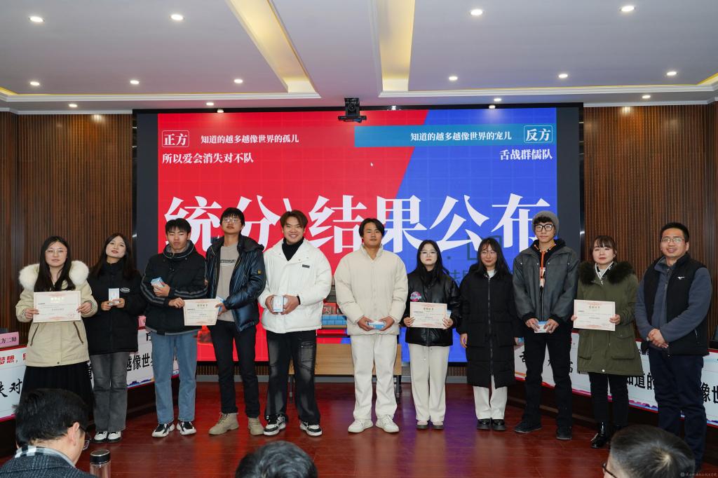 本届校园辩论赛中,辩手们在赛场上才思敏捷、字字珠玑、平分秋色,为我们呈现了一场场精彩纷呈的对战,展现了青年大学生勤学善思、明辨笃行的青春风采。让我们期待着下一届更加精彩的辩论赛。