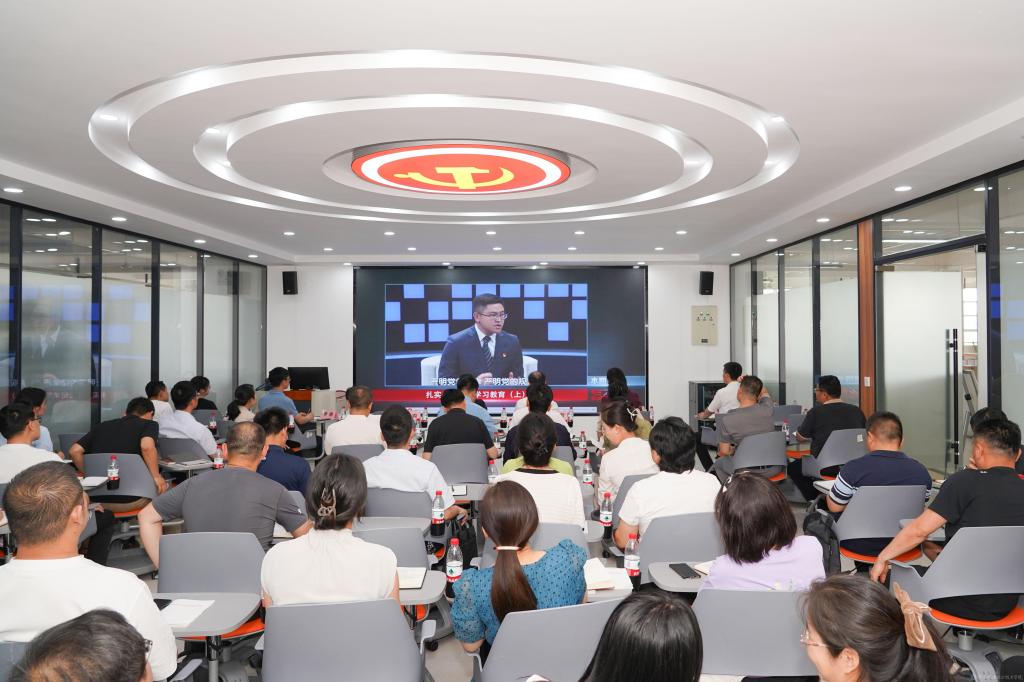 开班式结束后,与会人员集体观看了北京广播电视台电视专题片《扎实开展党纪学习教育(上)》。