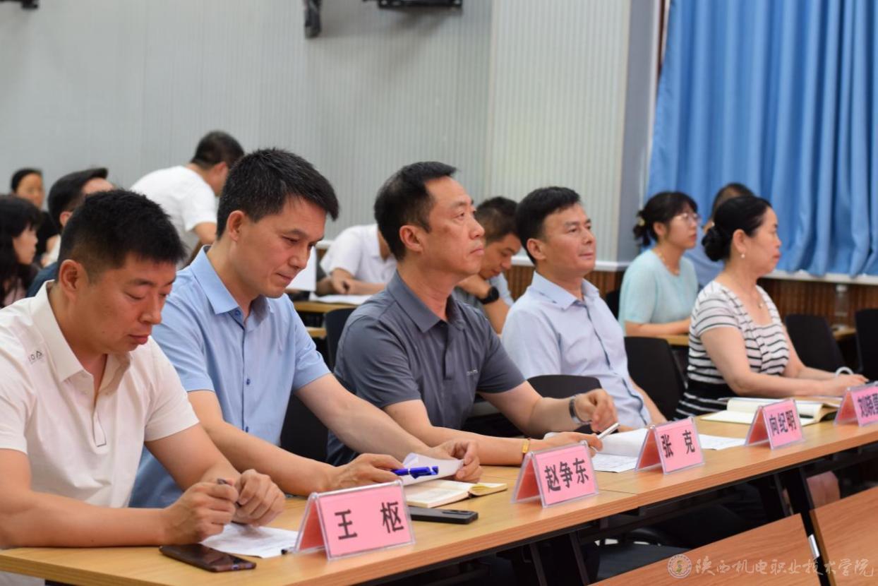 为深入学习贯彻习近平总书记对学校思政课建设作出的重要指示和习近平总书记在学校思想政治理论课教师座谈会上的重要讲话精神,全面落实立德树人根本任务,坚持不懈用习近平新时代中国特色社会主义思想铸魂育人,7月4日下午,陕西机电职业技术学院在博学楼111会议室举办了2024年思政课程课程思政教师“大练兵”校级展示活动。