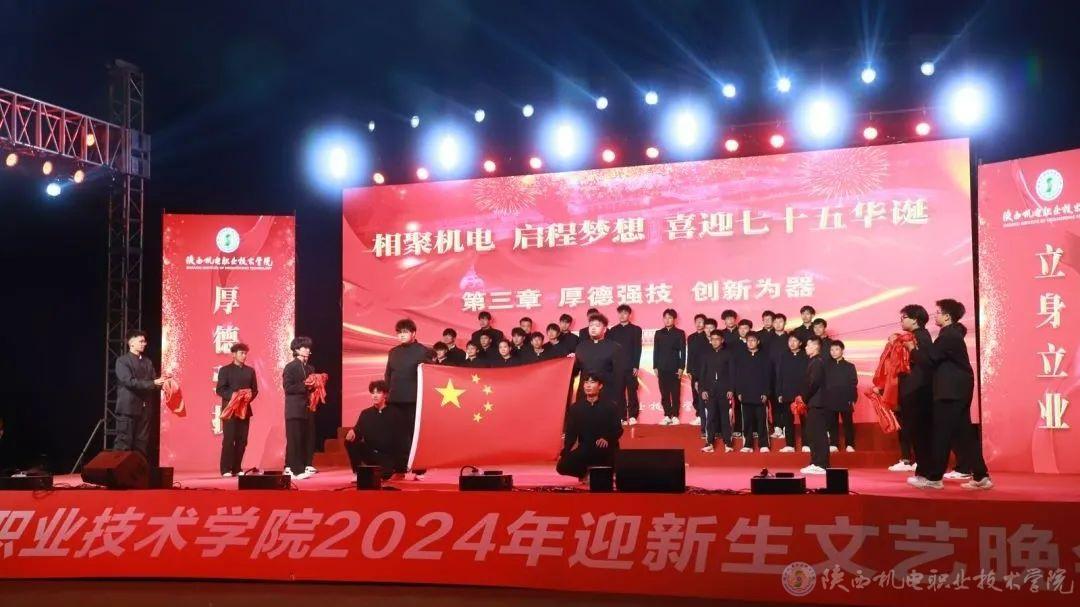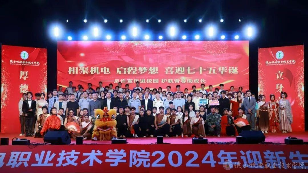 9月26日和27日,陕西机电职业技术学院联合宝鸡市公安局、宝鸡市人社局、中共宝鸡市委网信办、共青团宝鸡市委、中国人民银行宝鸡市分行、宝鸡市公安局金台分局、招商银行宝鸡分行、海通证券股份有限公司宝鸡经二路证劵营业部隆重举办了2024年“相聚机电 启程梦想 喜迎七十五华诞 反诈宣传进校园 护航青春助成长”主题迎新晚会。活动以“线下宣讲+线上直播”的方式,为4000余名在校学生送出了一份特别的开学礼。