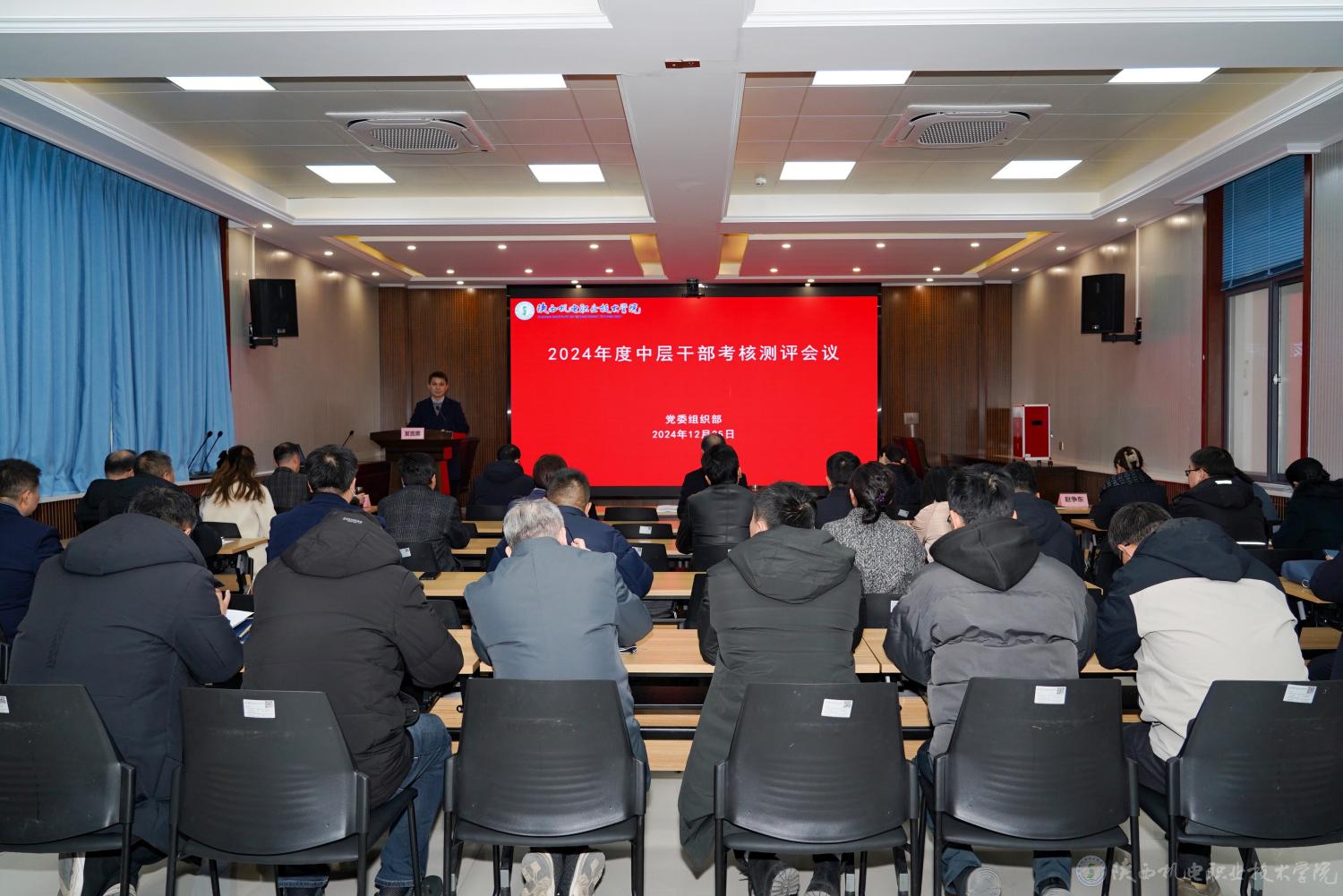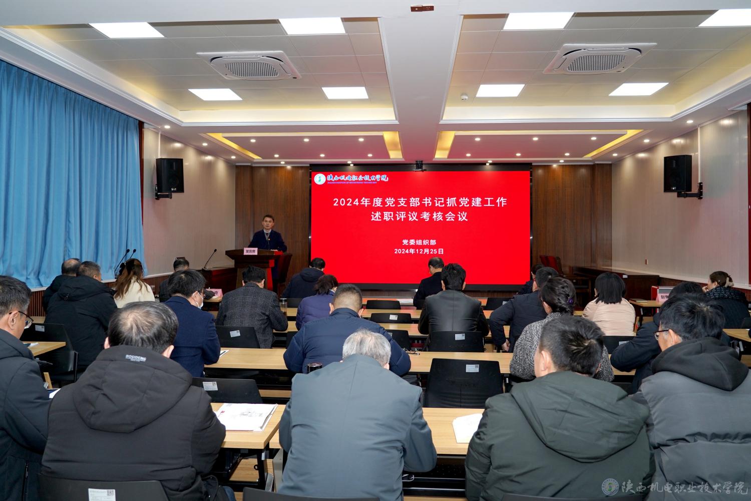 12月25日下午,学校2024年度中层干部考核测评暨党支部书记抓党建工作述职评议考核工作会议在蟠龙校区博学楼111室召开,学校党委委员、校领导,各党支部书记、各二级学院院长、各部门负责人,教职工代表、支部党员代表参加。会议由党委委员、院长助理、组织部部长赵争东主持。
