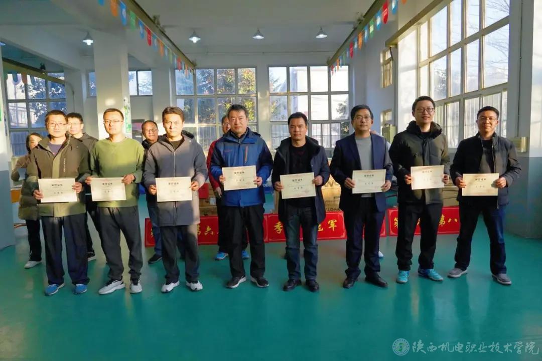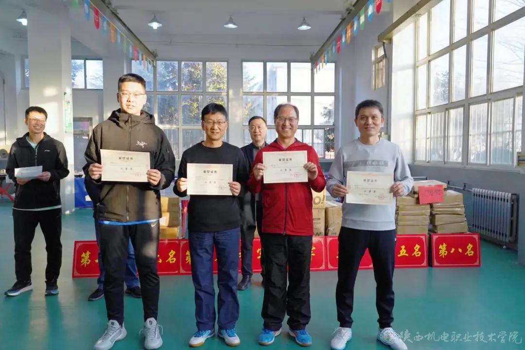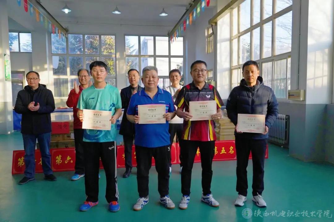 教职工乒乓球赛个人赛获得男子一等奖的是王文忠、陈峰、蔡鹏飞、张小辉;获得男子二等奖的是伊逊智、张泽宁、赵争东、贾九荣;获得男子三等奖的是周东、李英儒、张喆、康小斌、杨科、徐建、何京浩、张晓伟。