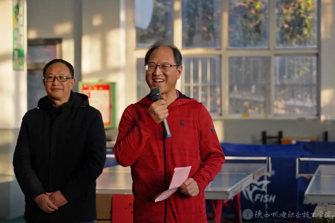 12月26日下午,陕西机电职业技术学院2024年“迎新年·庆元旦”暨第二届教职工乒乓球赛开幕式在宝福路校区乒乓球馆开幕。校党委书记伊逊智,党委副书记、院长向纪明,党委副书记、纪委书记陈红梅,党委委员、宣传部部长、工会主席李明,党政办公室副主任、工会副主席康健出席开幕式。基础部(体育部)部长李明主持开幕式。