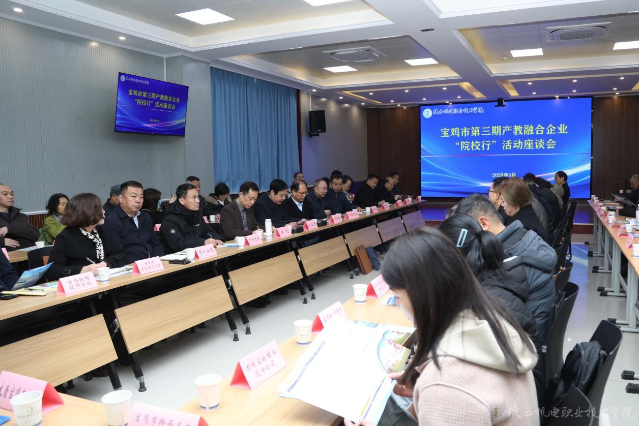 为深入贯彻执行《宝鸡市职业教育产教融合赋能提升行动实施方案(2024—2026年)》,持续推进校企合作、产教融合,宝鸡市产教融合企业“院校行”第三期活动在陕西机电职业技术学院成功举办。