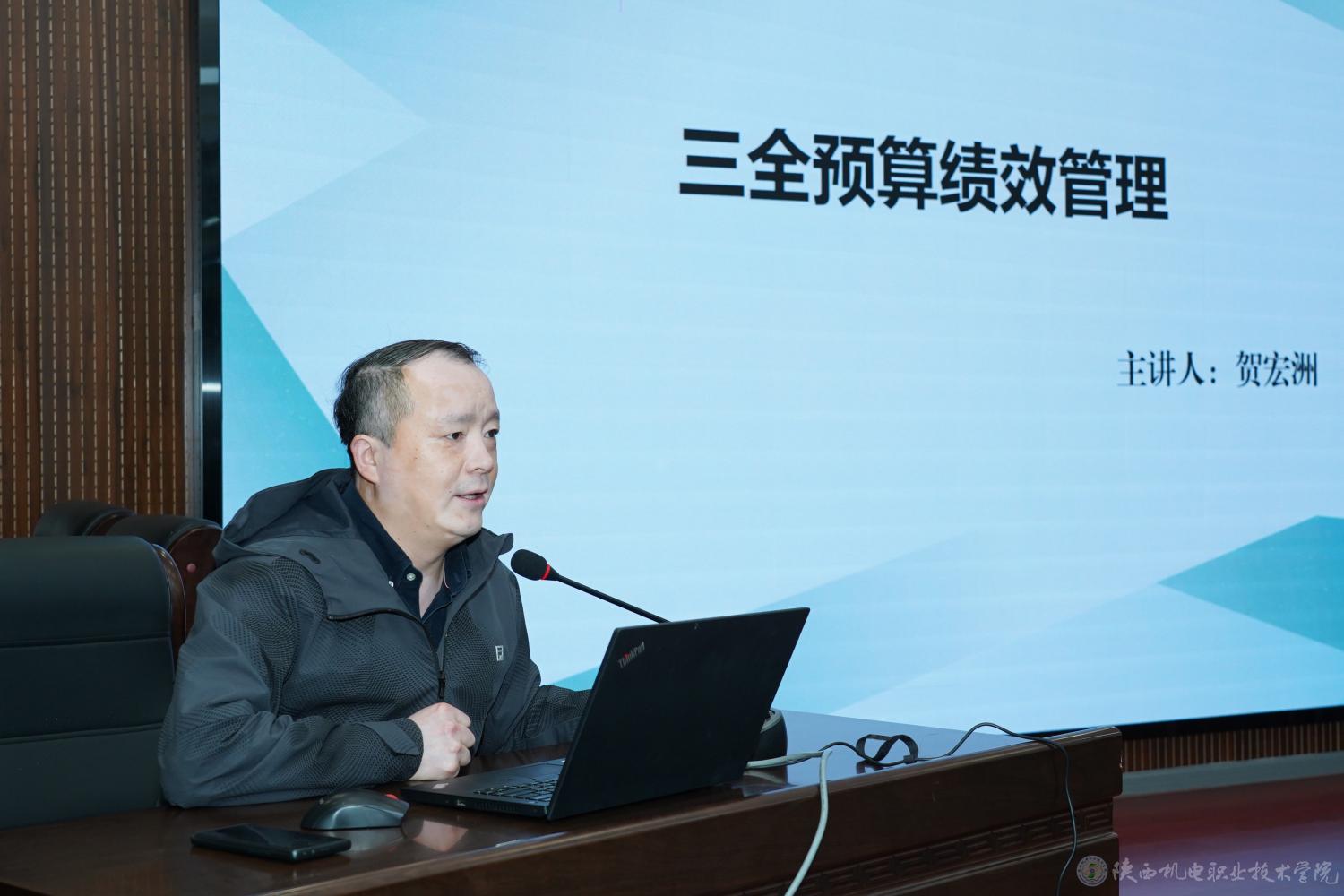3月11日上午,陕西机电职业技术学院在蟠龙校区博学楼111会议室召开专项资金项目绩效评价专题培训会,会议邀请宝鸡市财政局综合科科长贺宏洲作了题为《三全预算绩效管理》的专题辅导报告。学校党委书记伊逊智,党委副书记、纪委书记陈红梅,党委委员、副院长张克,党委委员、院长助理赵争东,党委委员、宣传部部长李明,中层干部、二级学院负责人及专项资金项目负责老师参加培训会。培训会由学校总会计师、资产管理处处长严炜主持。