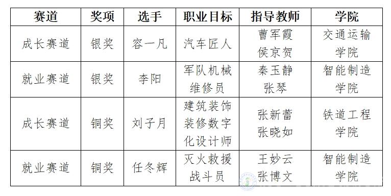 3月5日,第二届全国大学生职业规划大赛陕西省决赛(职教组)在陕西财经职业技术学院举行。陕西机电职业技术学院交通运输学院学生容一凡获得职教组成长赛道银奖,智能制造学院学生李阳获得职教组就业赛道银奖;铁道工程学院学生刘子月获得职教组成长赛道铜奖,智能制造学院学生任冬辉获得职教组就业赛道铜奖。他们凭借出色的职业规划方案,清晰的职业目标阐述以及沉着的现场发挥,斩获两银两铜,为学校再创佳绩。