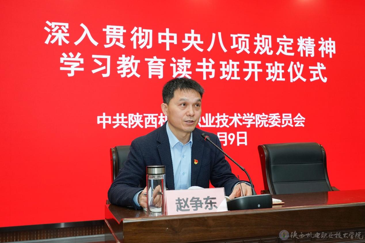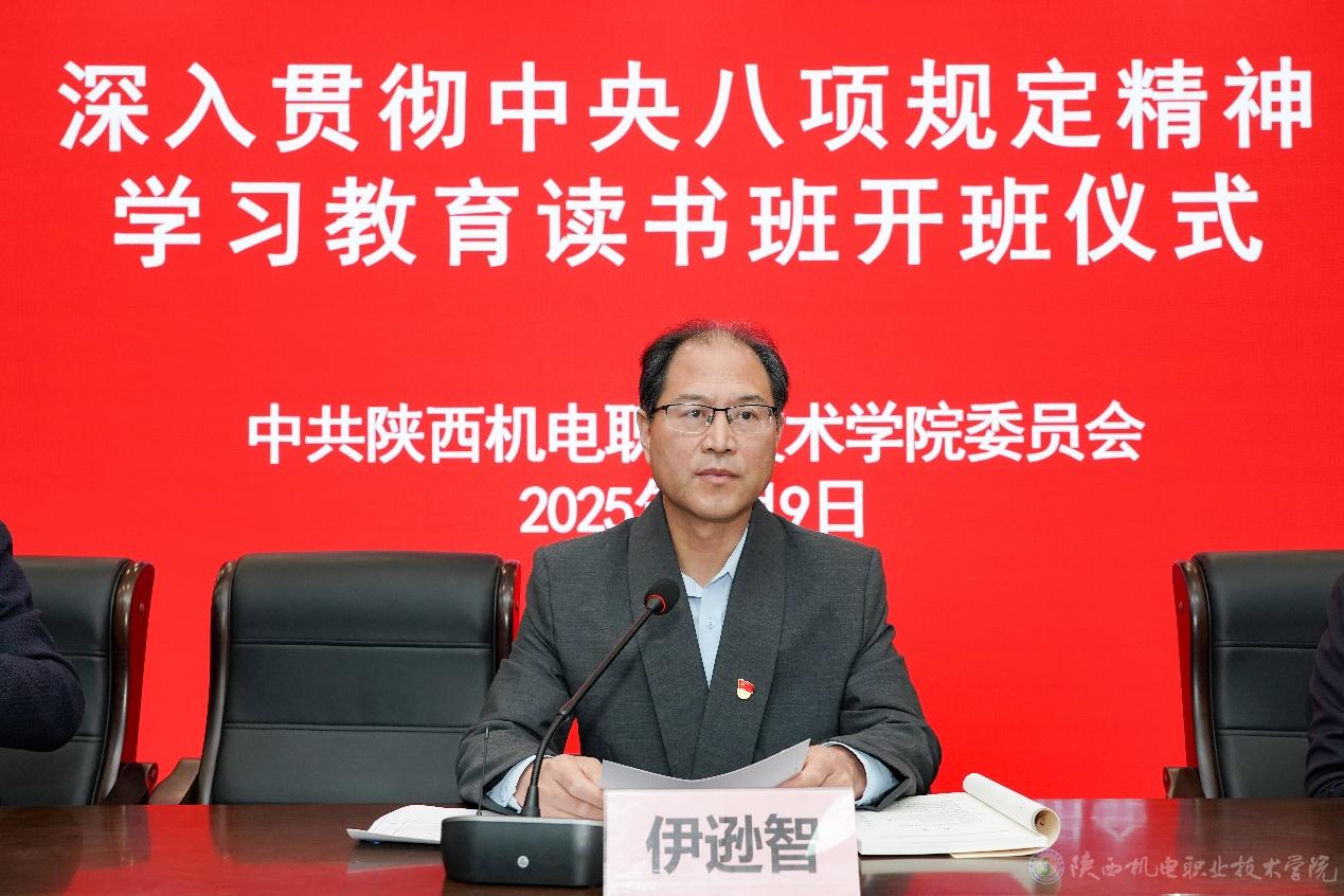 4月9日上午,陕西机电职业技术学院党委举办深入贯彻中央八项规定精神学习教育读书班开班式。党委书记伊逊智出席开班式并讲话,全体校领导、处级干部参加。开班式由党委副书记张琴主持。